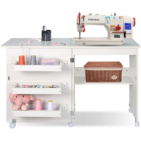 Amazon Com Giantex Folding Sewing Craft Table 3 Storage Bins Side Cabinet Interior Shelf Rolling Sewing Machine Cabinet Craft Station Desk With Lockable Wheels For Apartment Small Spaces White Arts Crafts
